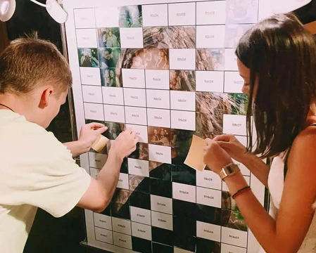 Our Photo Mosaic Wall turns individual selfies and event photos into a stunning collective artwork in real time. Guests take photos, which instantly appear as tiles on a giant mosaic display, gradually revealing a larger branded image or custom design. Ideal for corporate activations, weddings, and all types events.